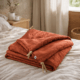 un toucher très doux en matière 100 % naturelle pour un chemin de lit à l’aspect très contemporain. De haute qualité, c’est un allié déco éco-conçu en fibres de lin issues de cultures françaises. Les lanières en jute des nouettes complètent le tableau.