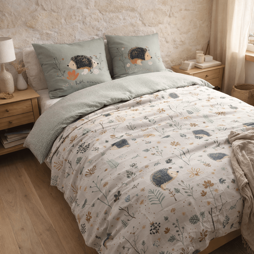 Parure de lit (Housse de couette + 2 Taies d’oreiller) Coton imprimé POLISSON (Lit double)