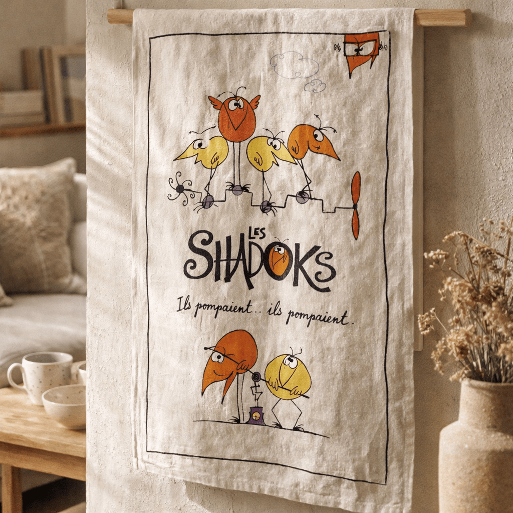 A la maison ‘Anna et Moi’, nous adorons ce torchon « Ils pompaient ». Sa confection 100% coton en fait un allié de choix pour essuyer rapidement tous vos ustensiles de cuisine, sans oublier la touche d’humour que lui confère le célèbre dessin des Shadoks de Rouxel. Mais ce n’est pas tout ! Nous l’utilisons aussi comme nappe pour nos petits déjeuners ensoleillés sur le balcon. Un vrai bonheur !