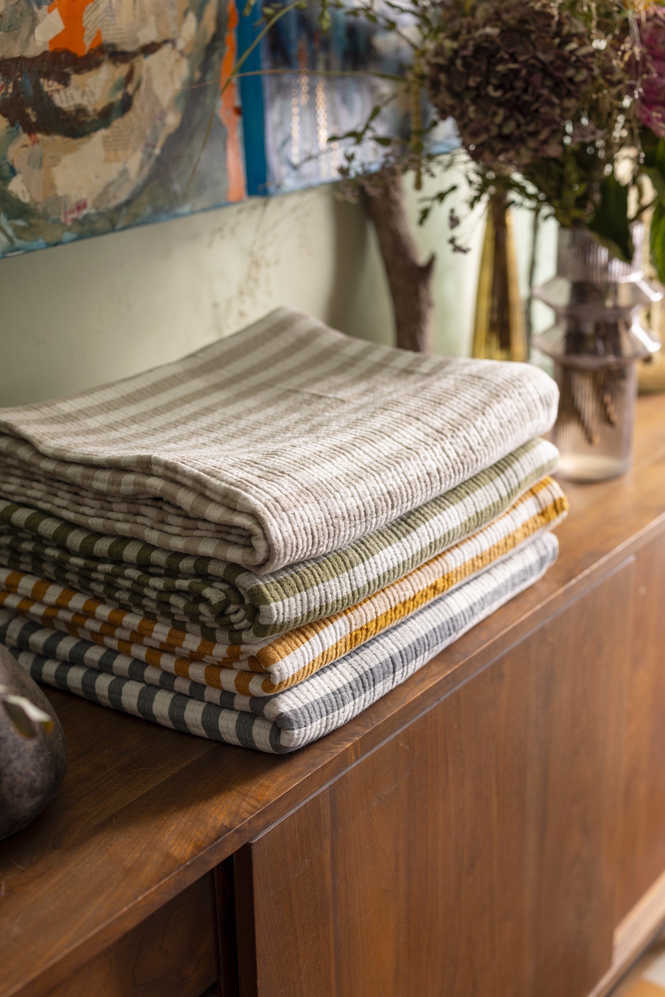 Le plaid Calista, c’est un peu comme un câlin, il sait toujours comment nous réconforter. Son motif rayé apporte une touche de peps à votre intérieur tout en restant élégant et discret. Son 100% coton vous assure une douceur sans égal pour ces soirées cocooning. Et pour le rendre encore plus personnel, pourquoi ne pas l’associer à votre coussin favori pour une soirée détente absolue ?