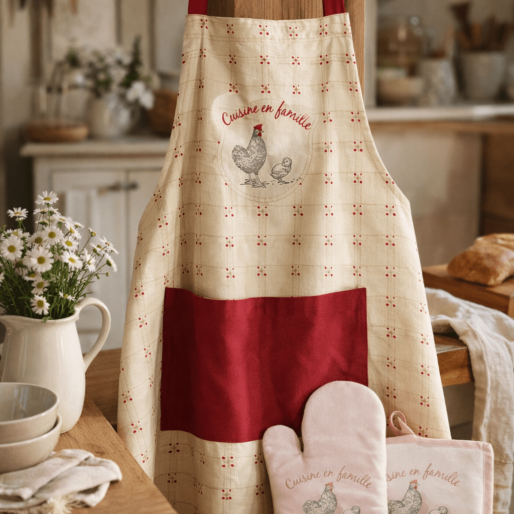 Chez Anna et Moi, nous adorons le tablier « En famille ». Son tissu 100% coton évoque l’authenticité et la chaleur de nos belles maisons de campagne. Il est l’allié idéal pour tous les cuisiniers, protégeant vos vêtements sans entraver vos mouvements. Et pourquoi ne pas l’utiliser pour une petite séance de jardinage ? Son charme rustique et sa robustesse seront tout aussi appréciés en extérieur qu’en cuisine.