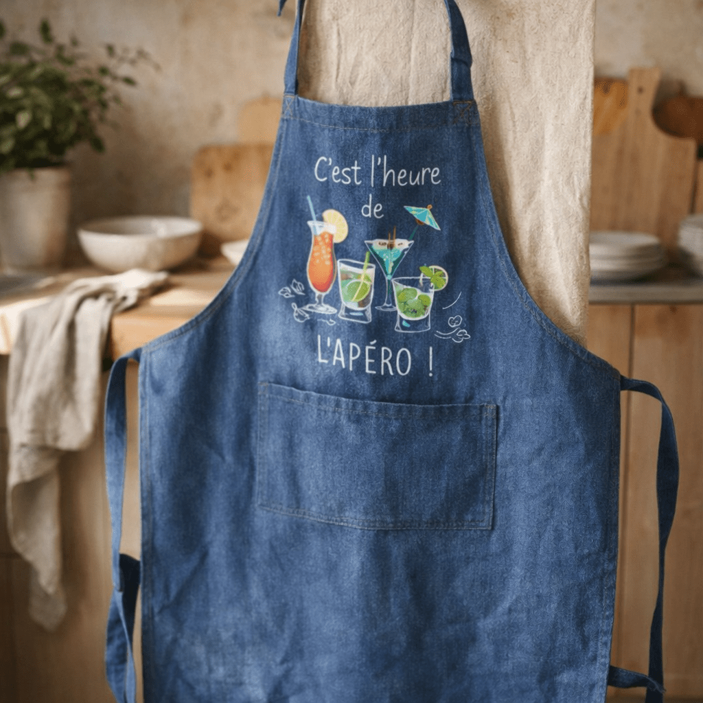 Et voici une petite astuce de grand-mère pour préserver la belle couleur de votre tablier Apéro : lors du premier lavage, ajoutez un verre de vinaigre blanc dans votre machine. Cela permettra de fixer la couleur et de préserver l’éclat de votre tablier pour longtemps. Et n’oubliez pas, le plus important est de le porter avec le sourire, c’est la garantie d’un apéro réussi !