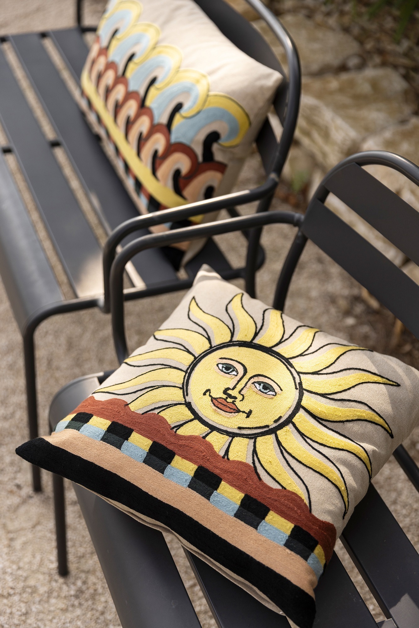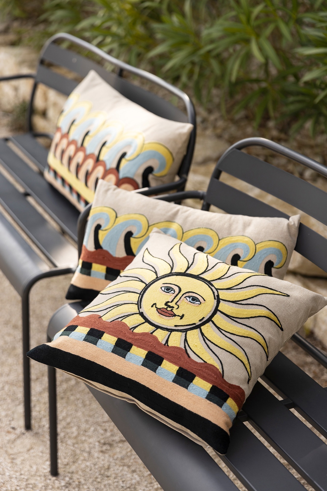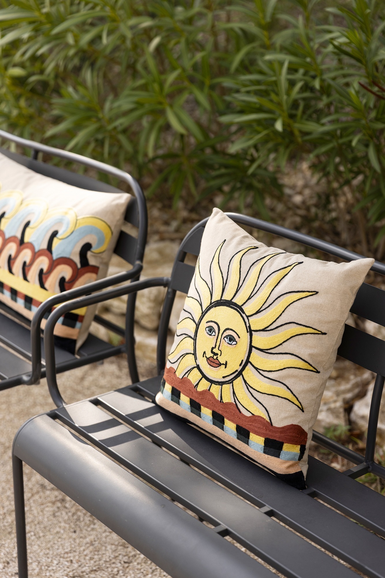 The Adria embroidered cushion is more than just an accessory, it’s an invitation to conviviality and joy. With its nature-inspired patterns, it brings a touch of freshness and dynamism to any interior. We love how it can transform an ordinary sofa into a welcoming and lively space. And why not take it with you on a family picnic? Its comfort and softness will delight everyone.